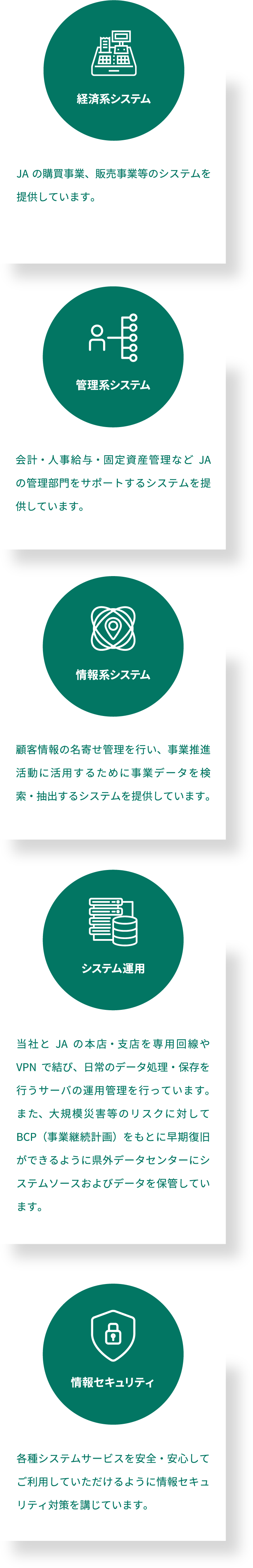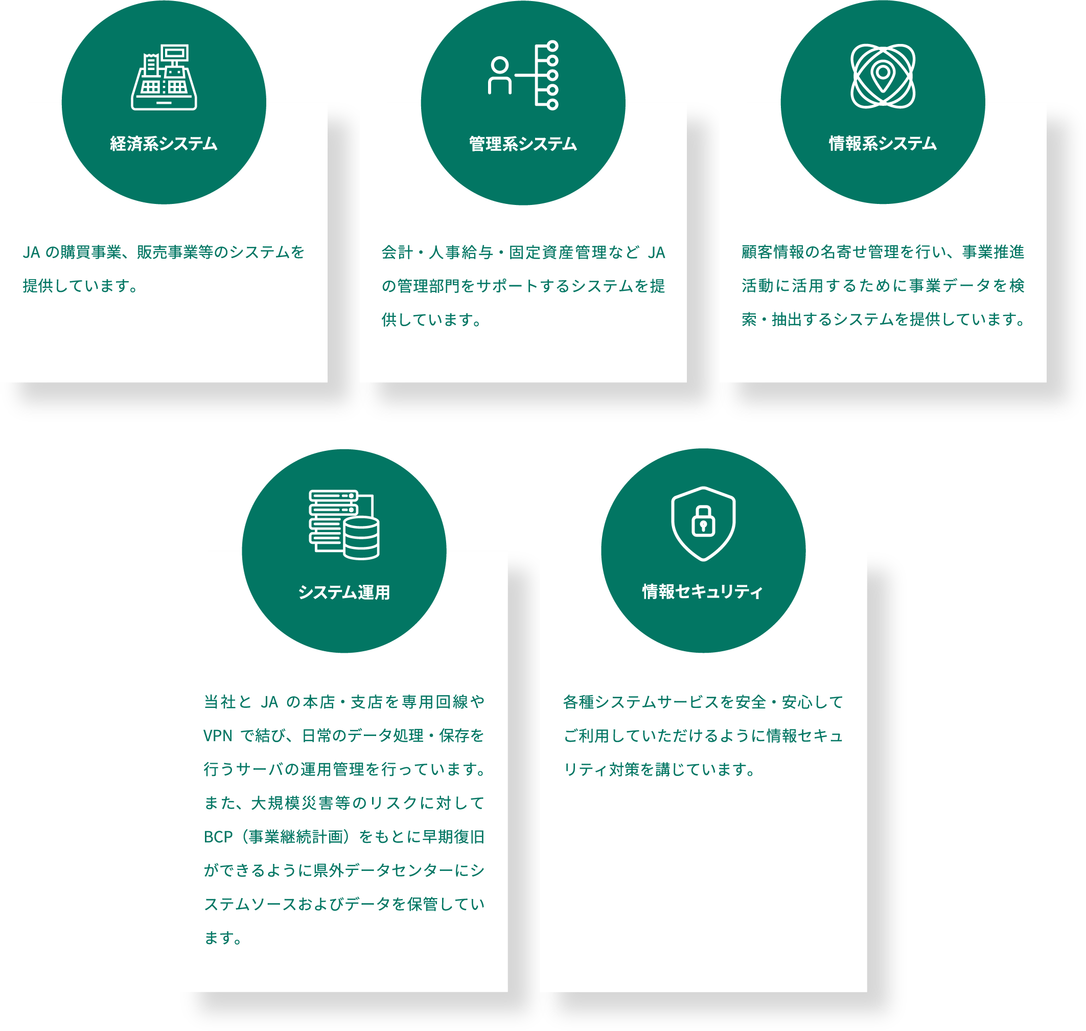 当社はJAグループ大分の総合情報センターとして、県下JAおよび農家組合員の発展に貢献する安全で高品質なシステムサービスを提供しています。